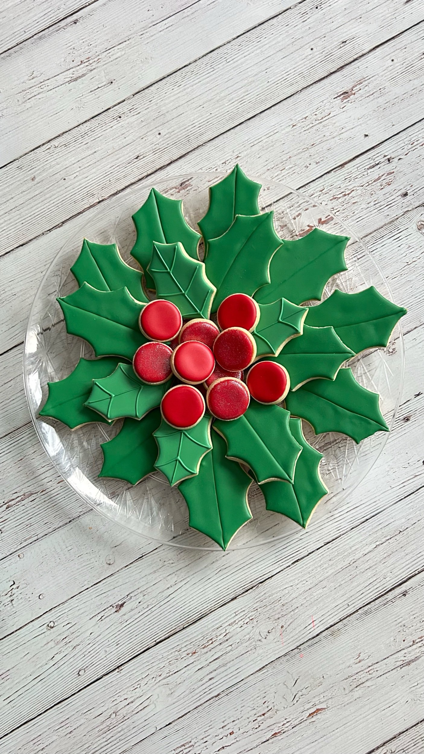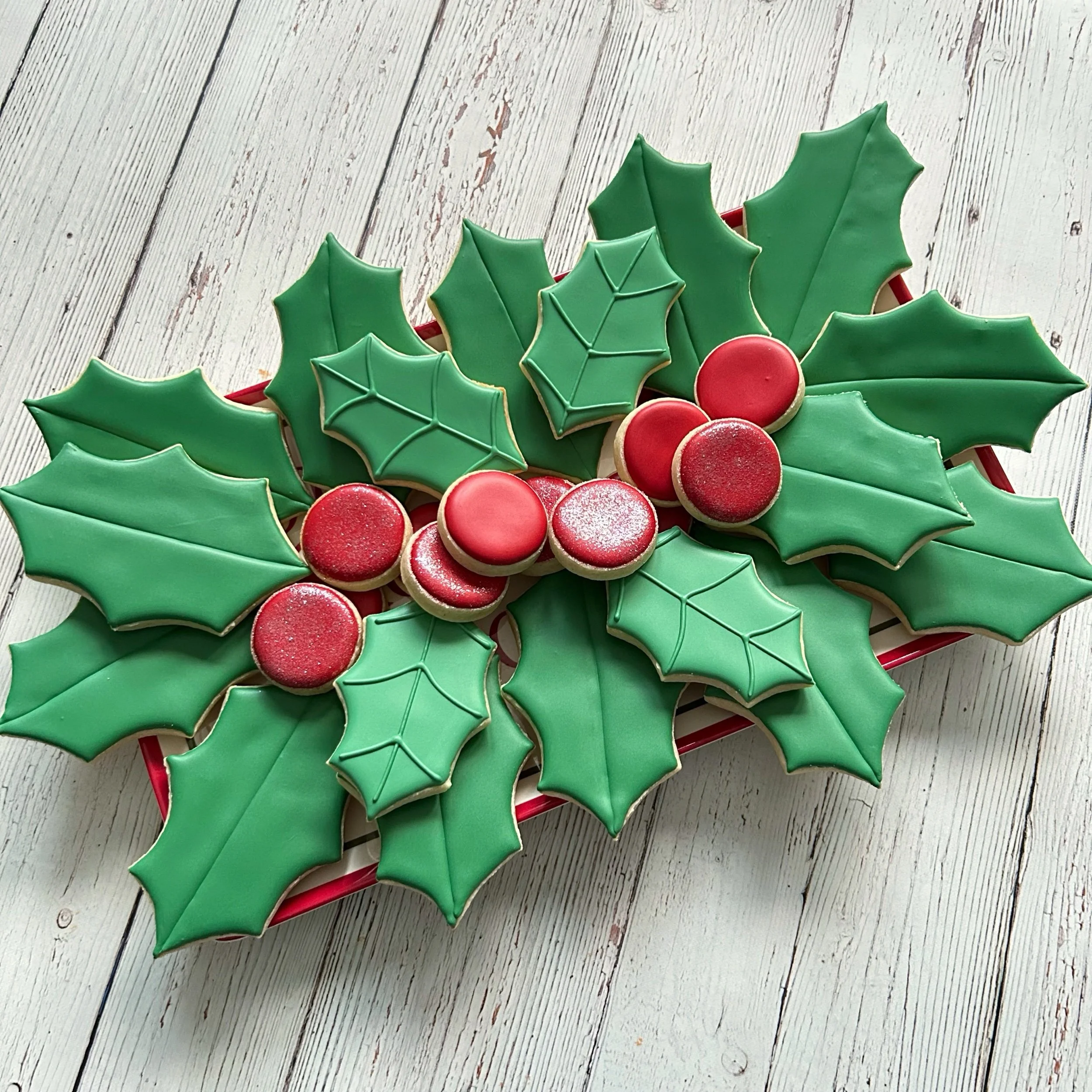 This platter includes 14 standard size cookies (4”), 4 medium size cookies (3”), and a dozen minis!